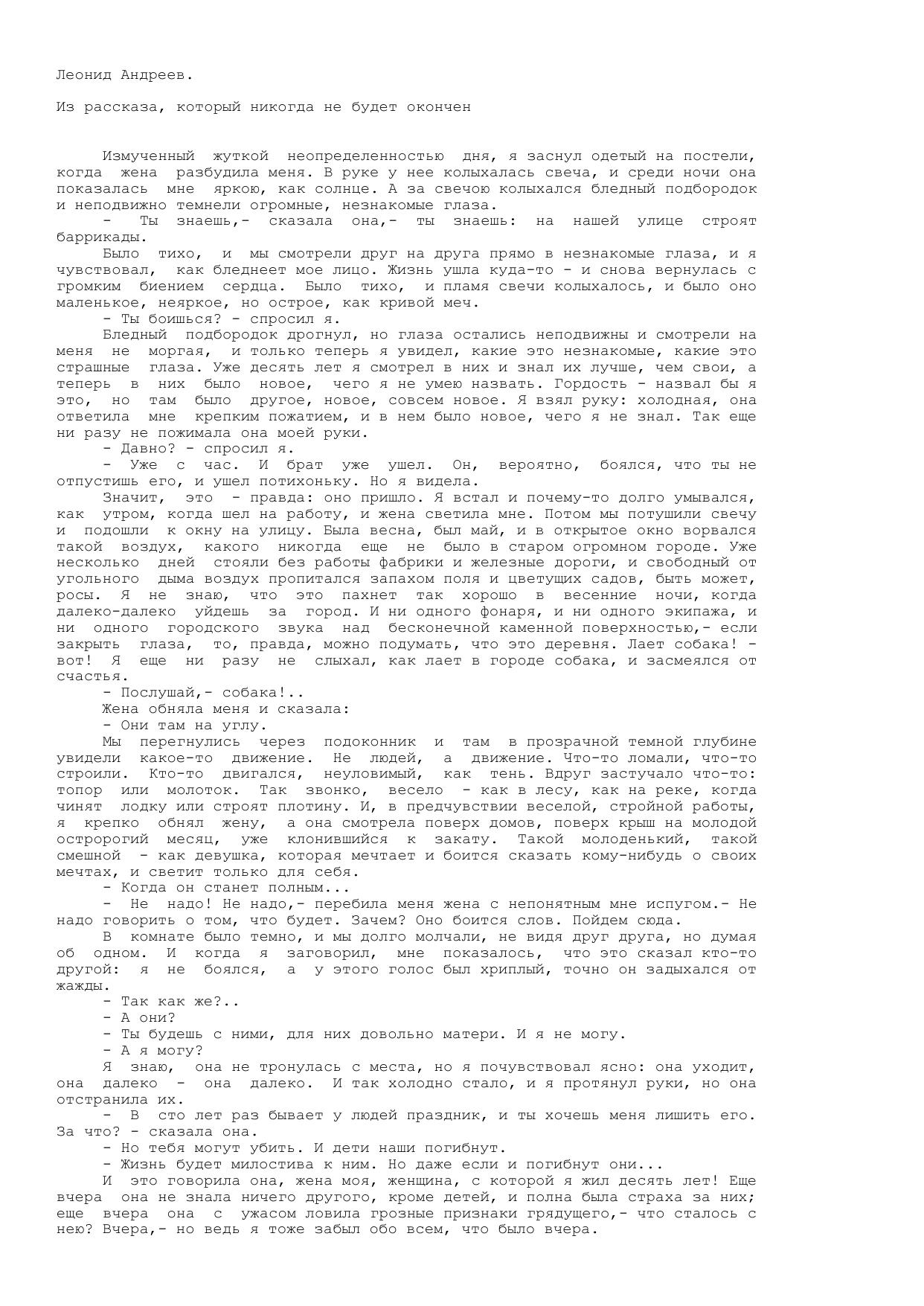 Из рассказа, который никогда не будет окончен