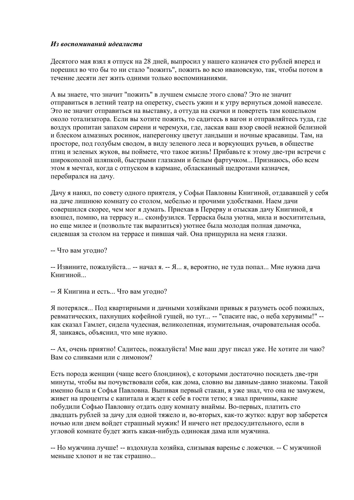 Из воспоминаний идеалиста