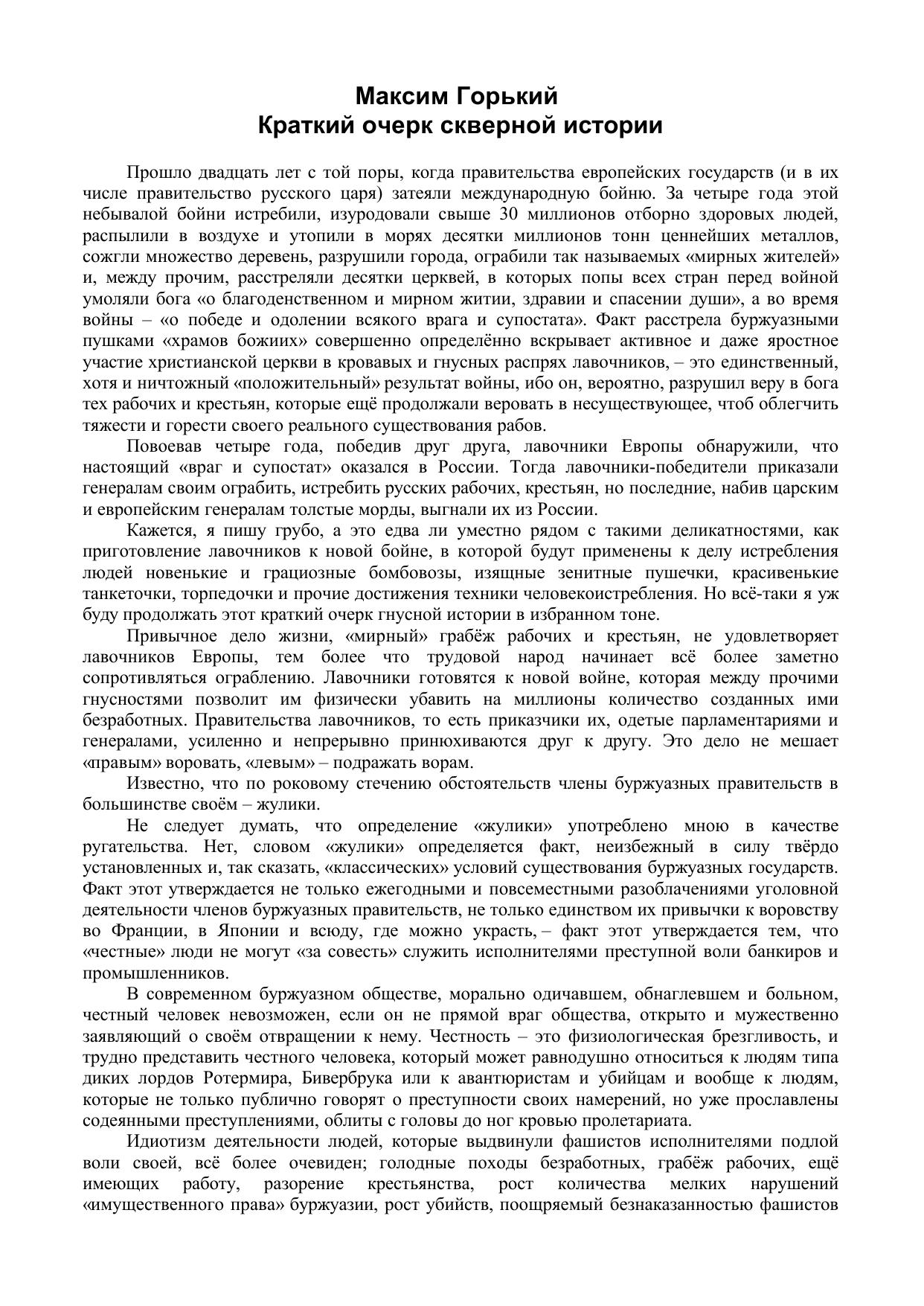 Краткий очерк скверной истории