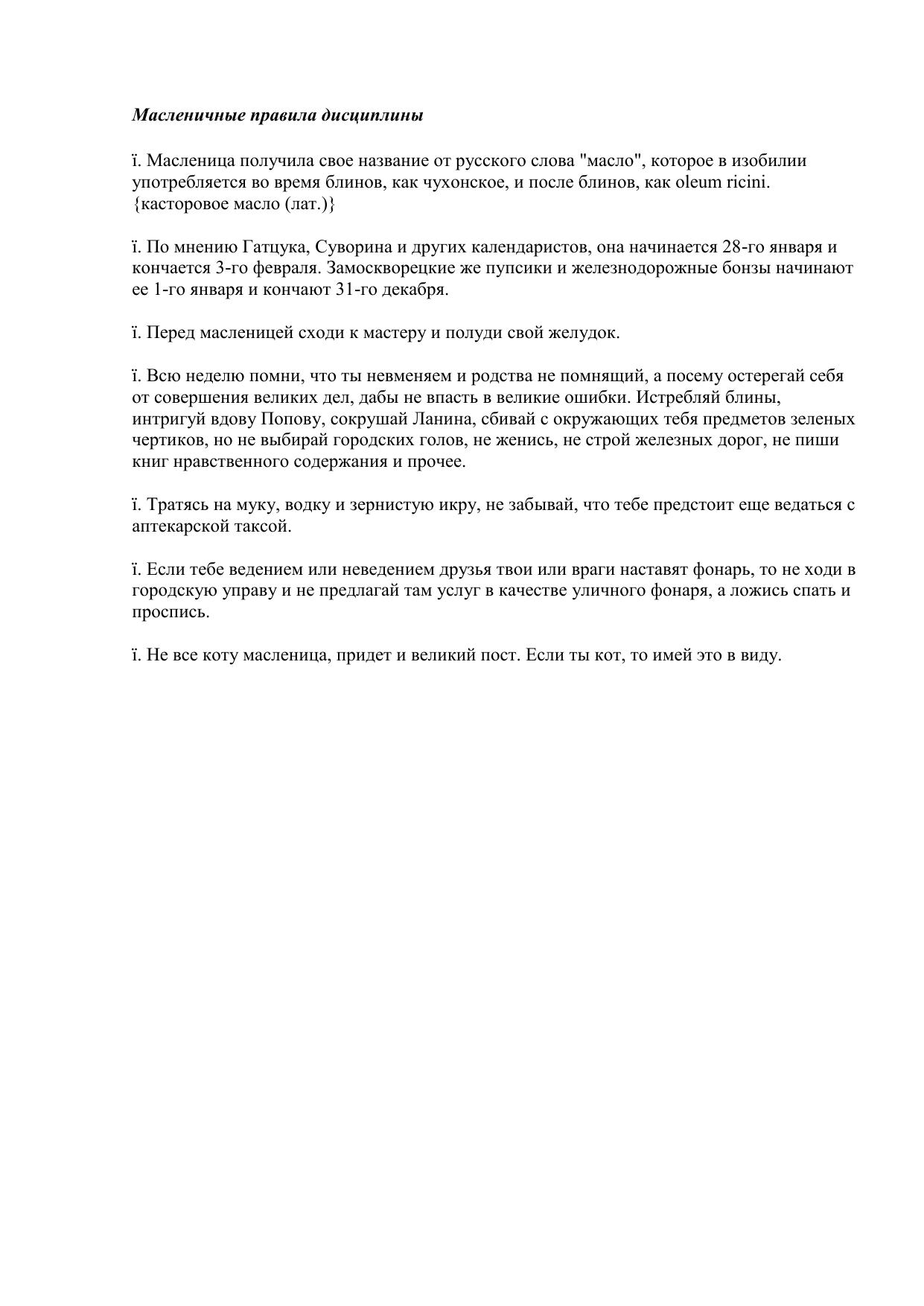 Масленичные правила дисциплины