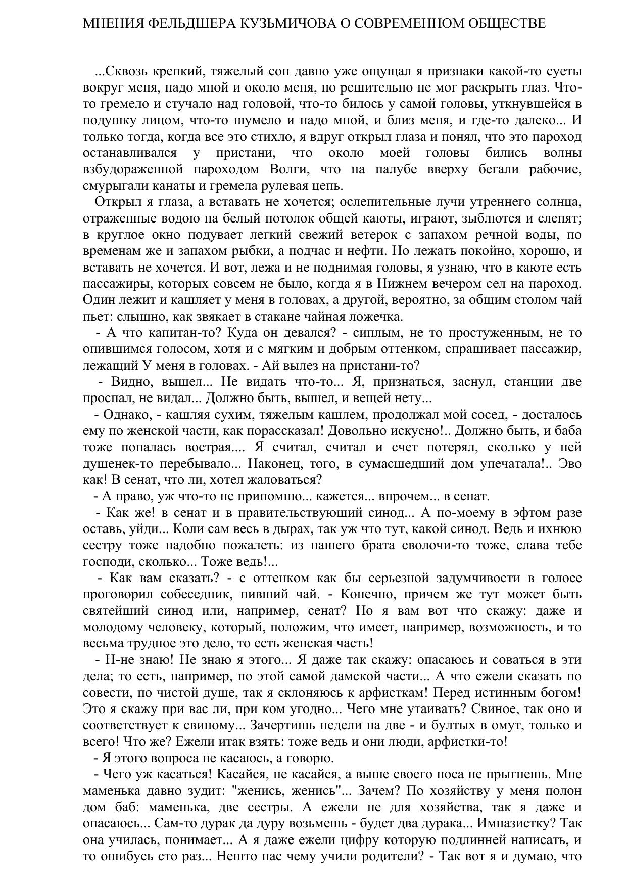 Мнения фельдшера Кузьмичова о современном обществе