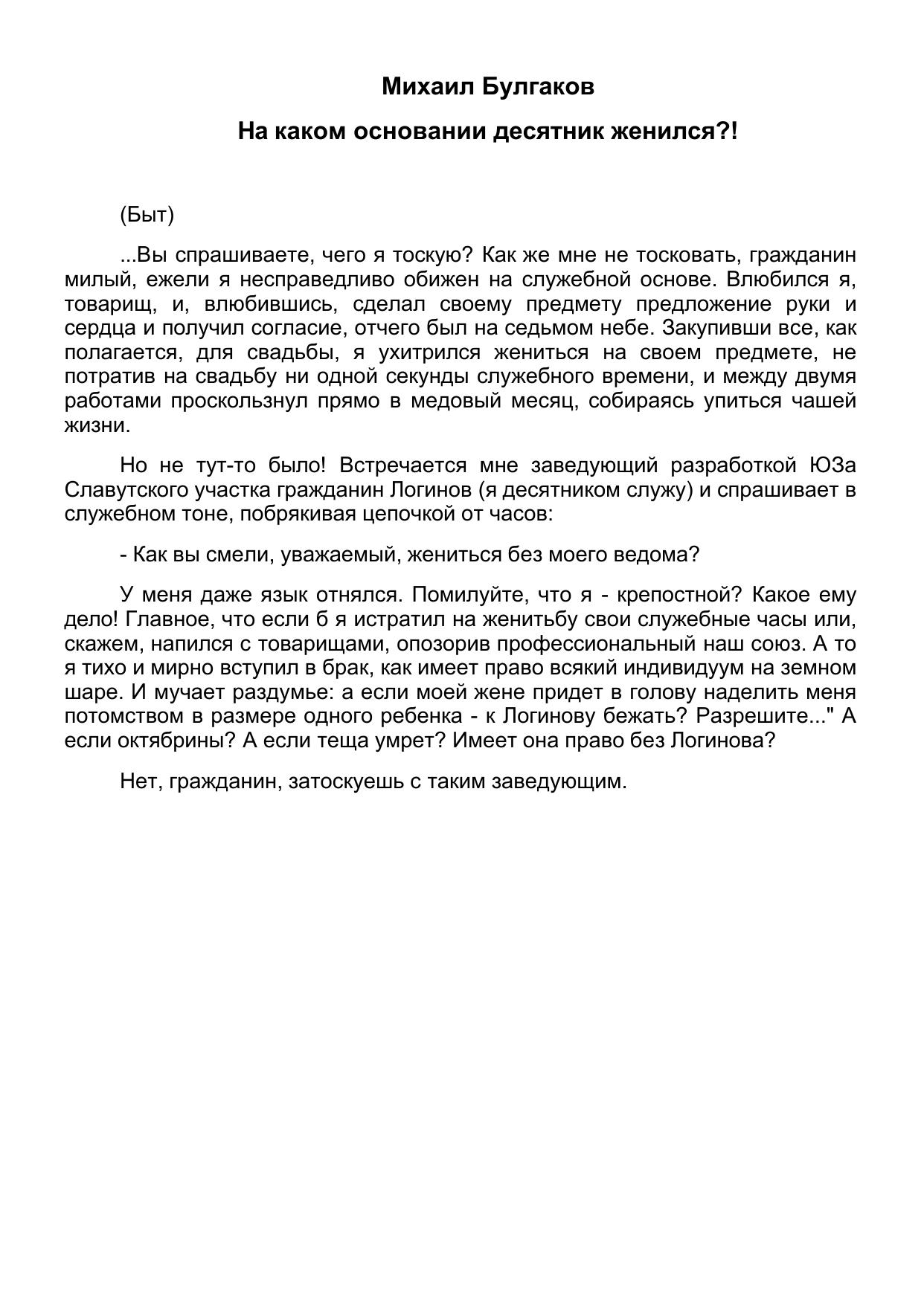 На каком основании десятник женился?!