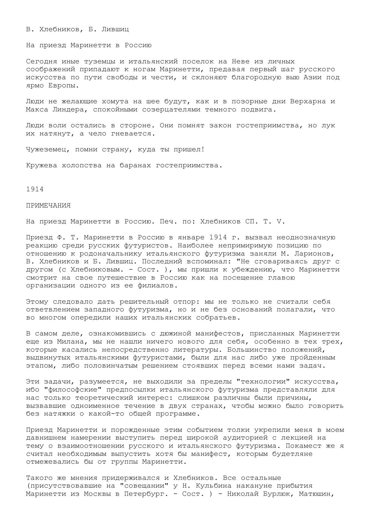 На приезд Маринетти в Россию (В. Хлебников, Б. Лившиц.)