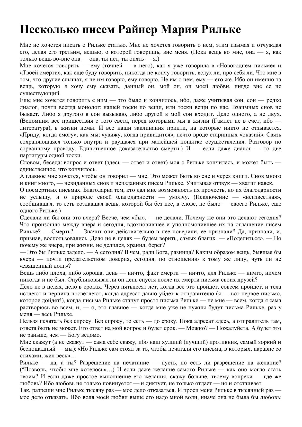 Несколько писем Райнер Мария Рильке