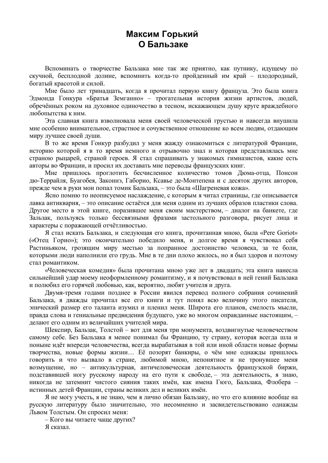 О Бальзаке