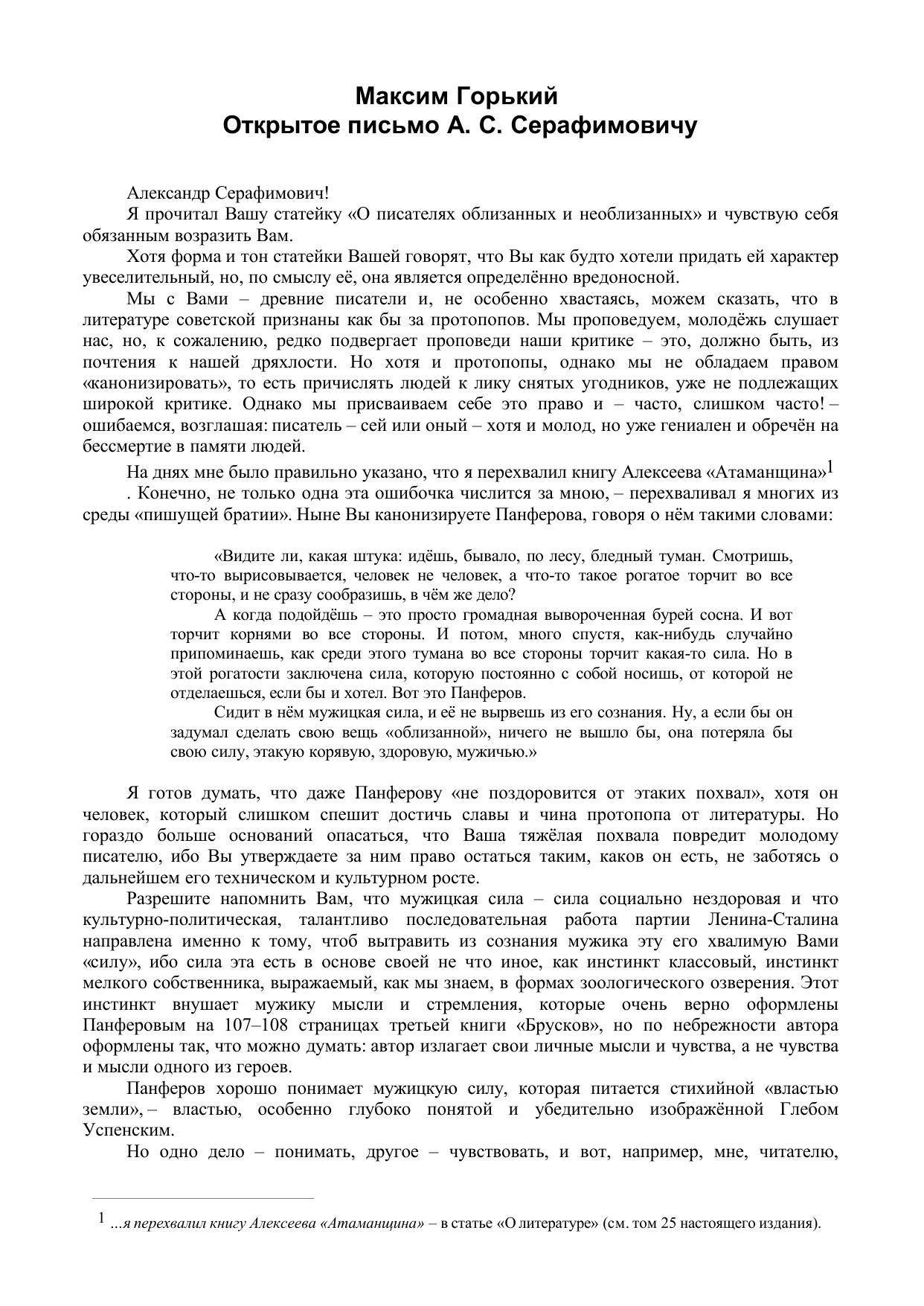 Открытое письмо А. С. Серафимовичу