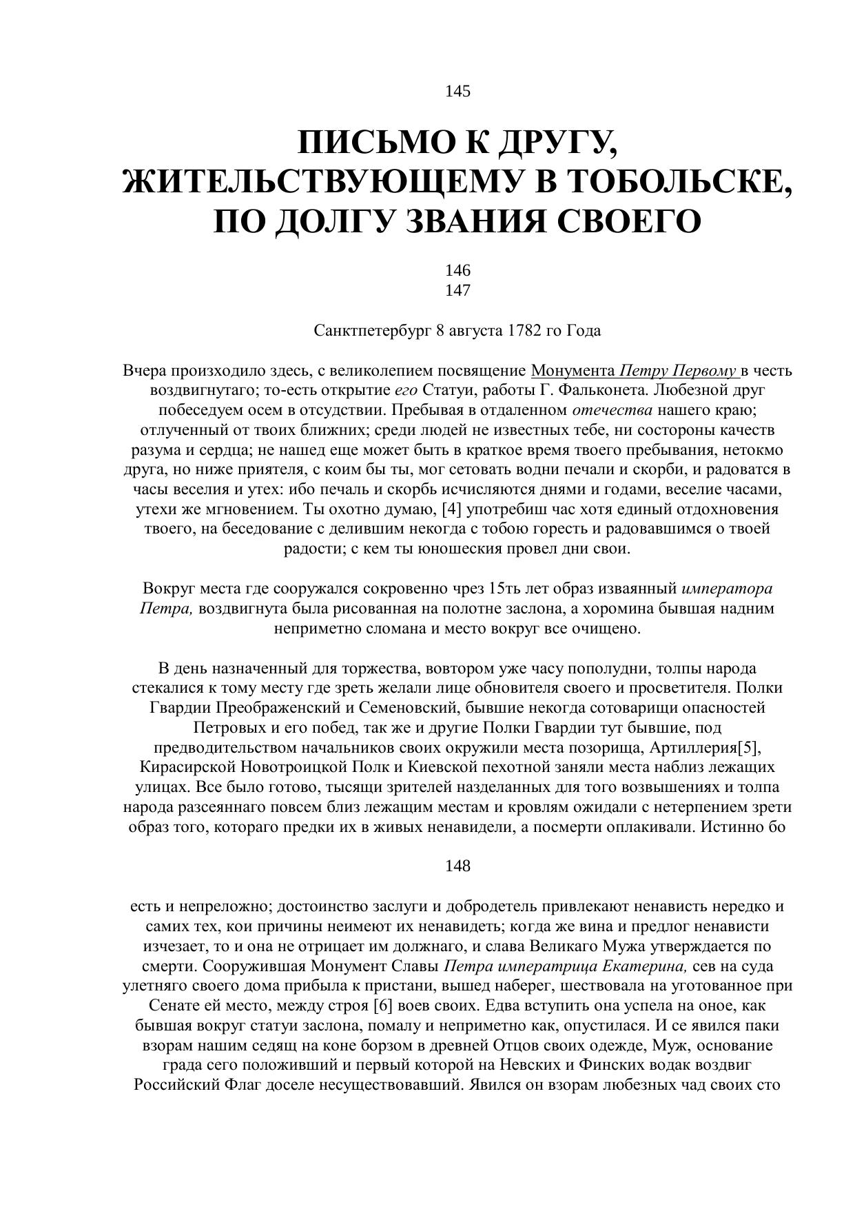 Письмо к Другу, жительствующему в Тобольске, по долгу звания своего
