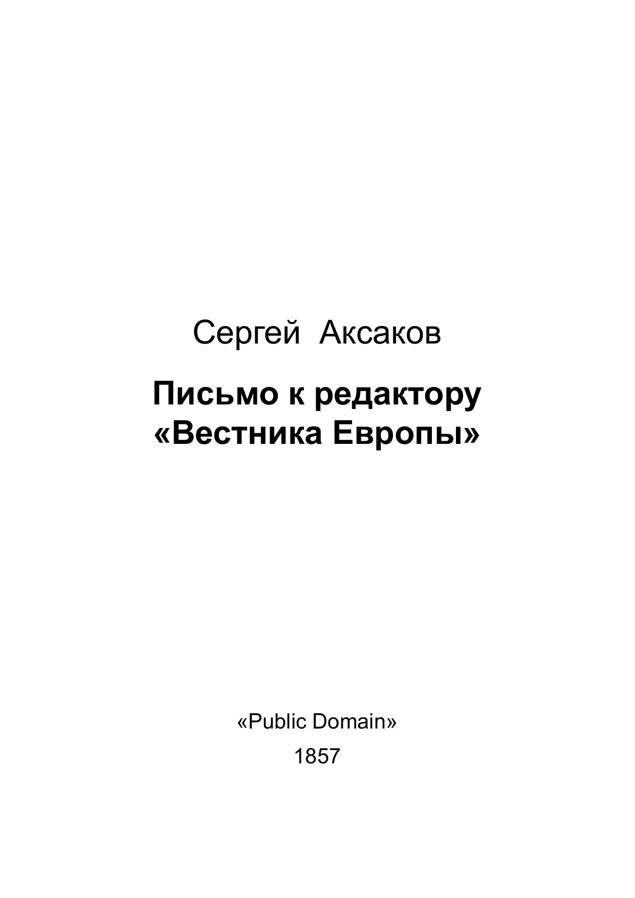 Письмо к редактору «Вестника Европы»