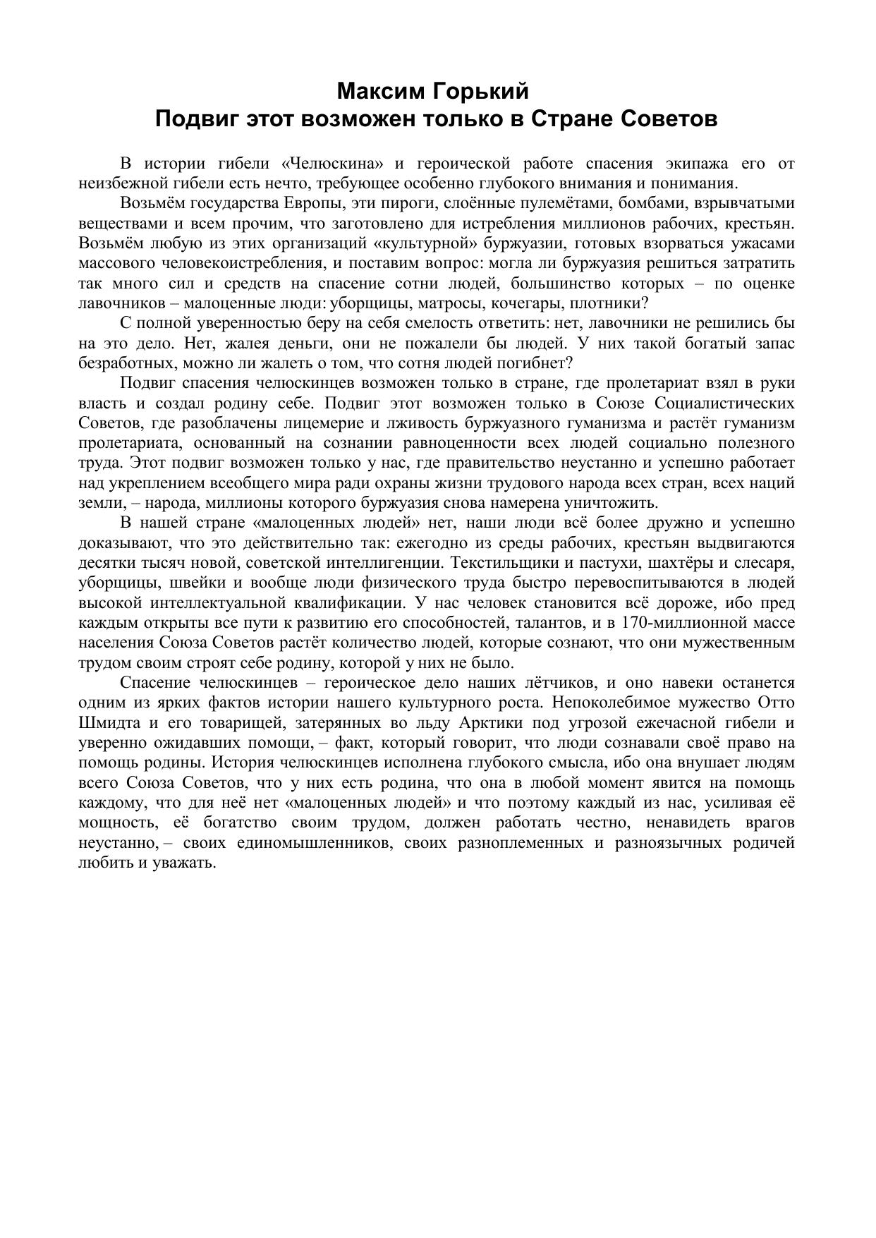 Подвиг этот возможен только в Стране Советов