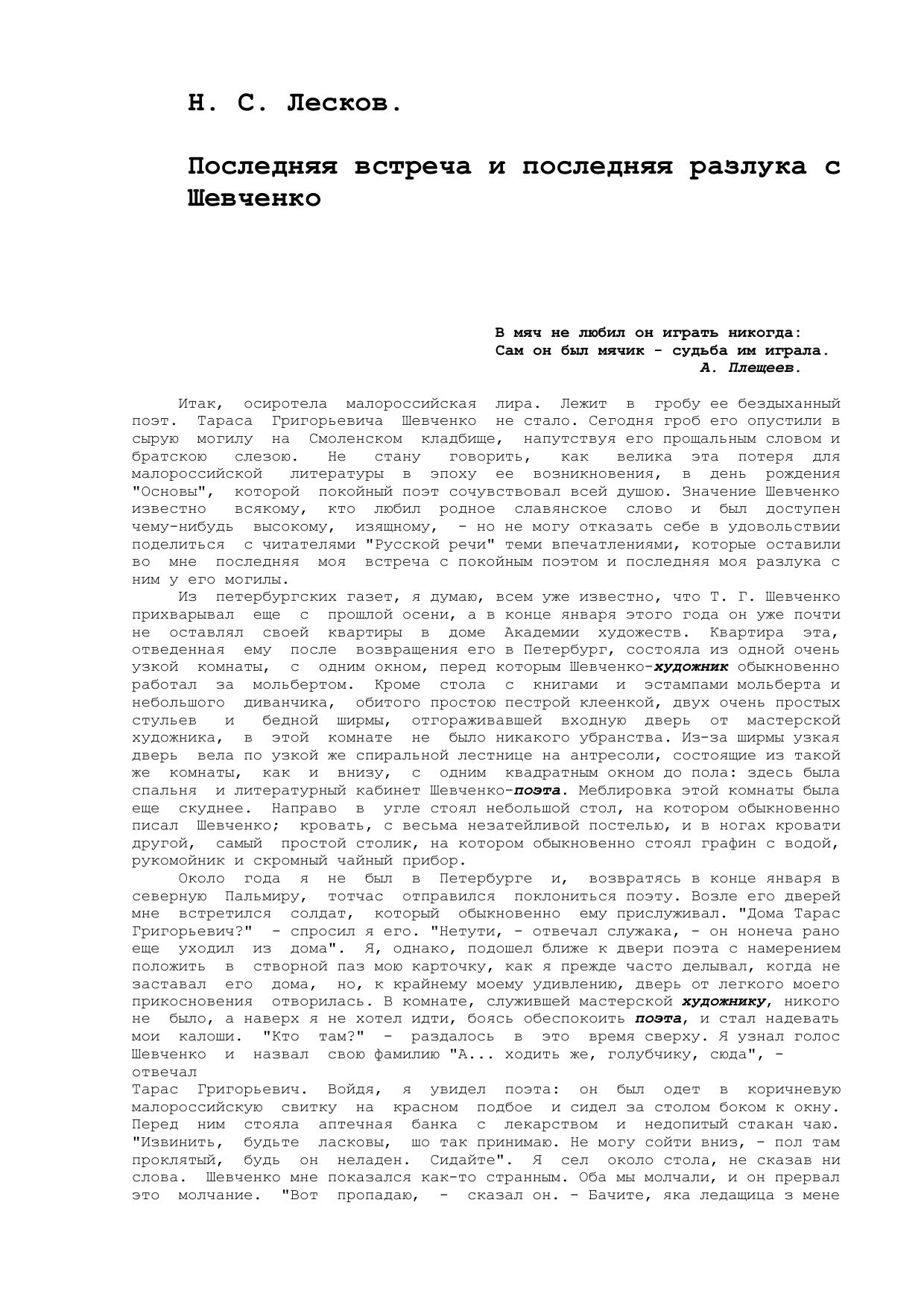 Последняя встреча и последняя разлука с Шевченко