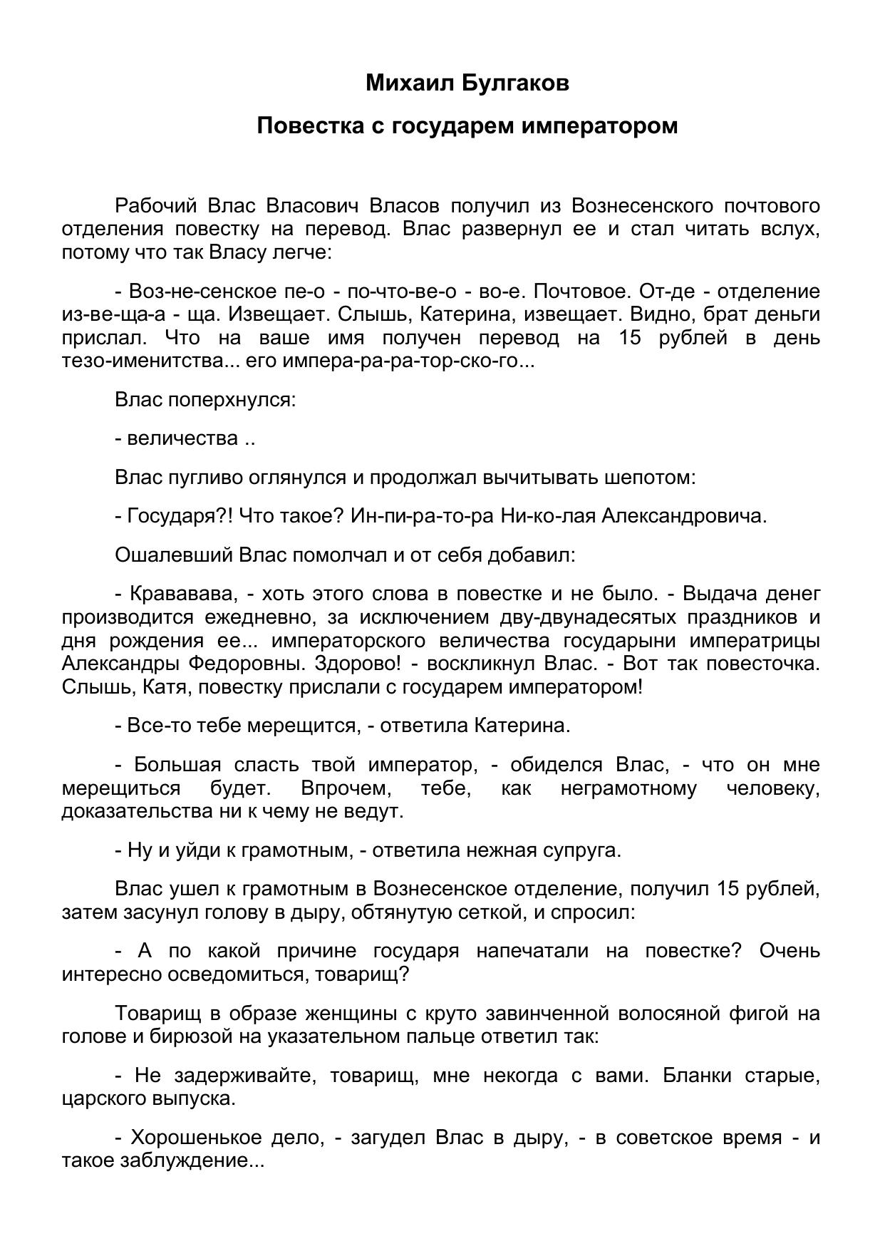 Повестка с государем императором