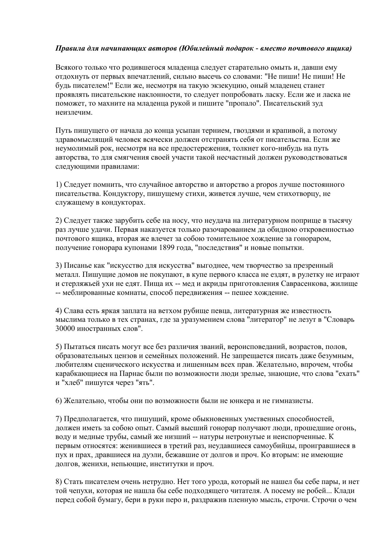 Правила для начинающих авторов