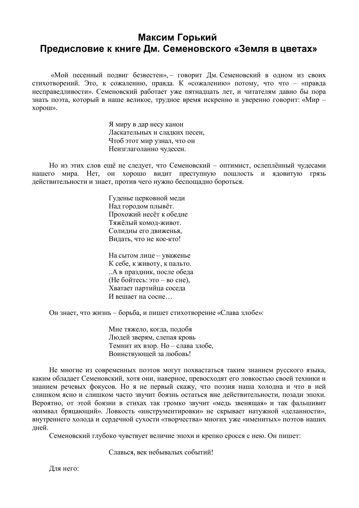 Предисловие к книге Дм. Семеновского Земля в цветах
