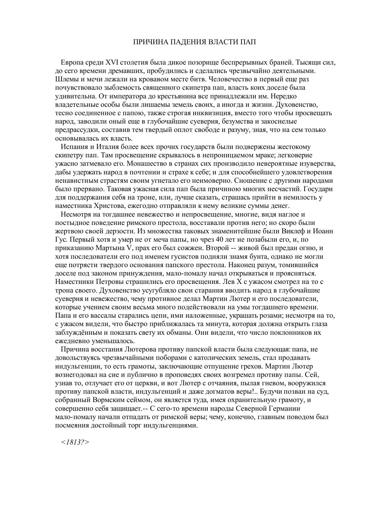 Причина падения власти пап