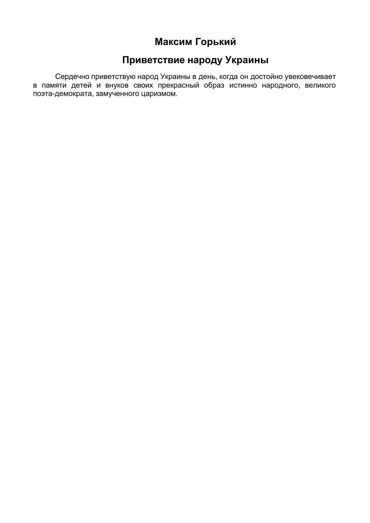 Приветствие народу Украины