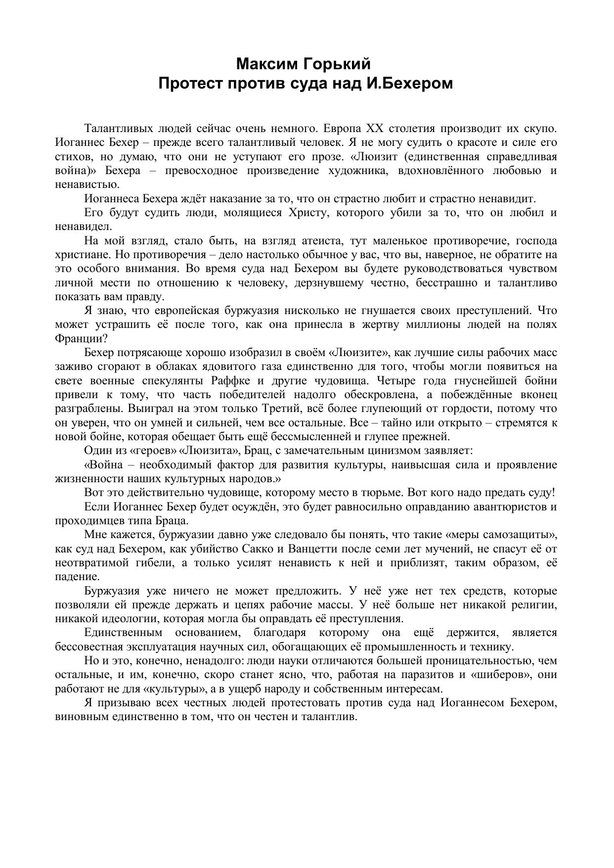 Протест против суда над И.Бехером