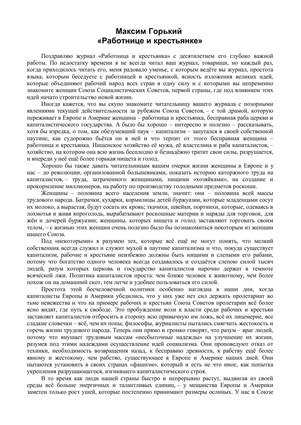 Работнице и крестьянке