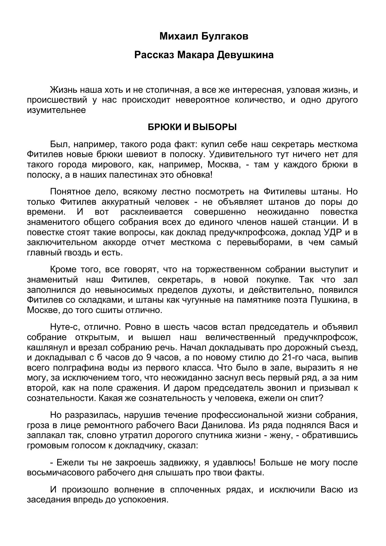 Рассказ Макара Девушкина