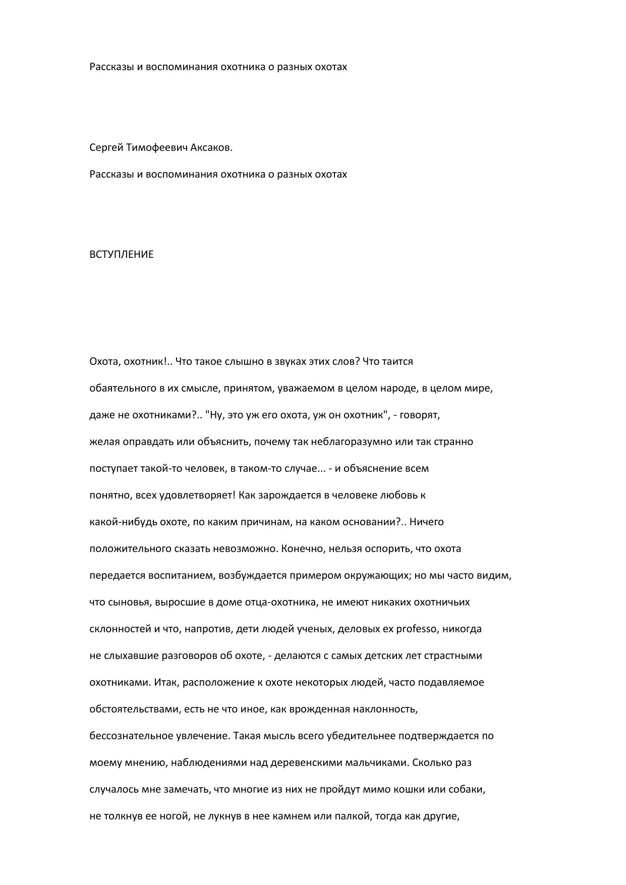 Рассказы и воспоминания охотника о разных охотах