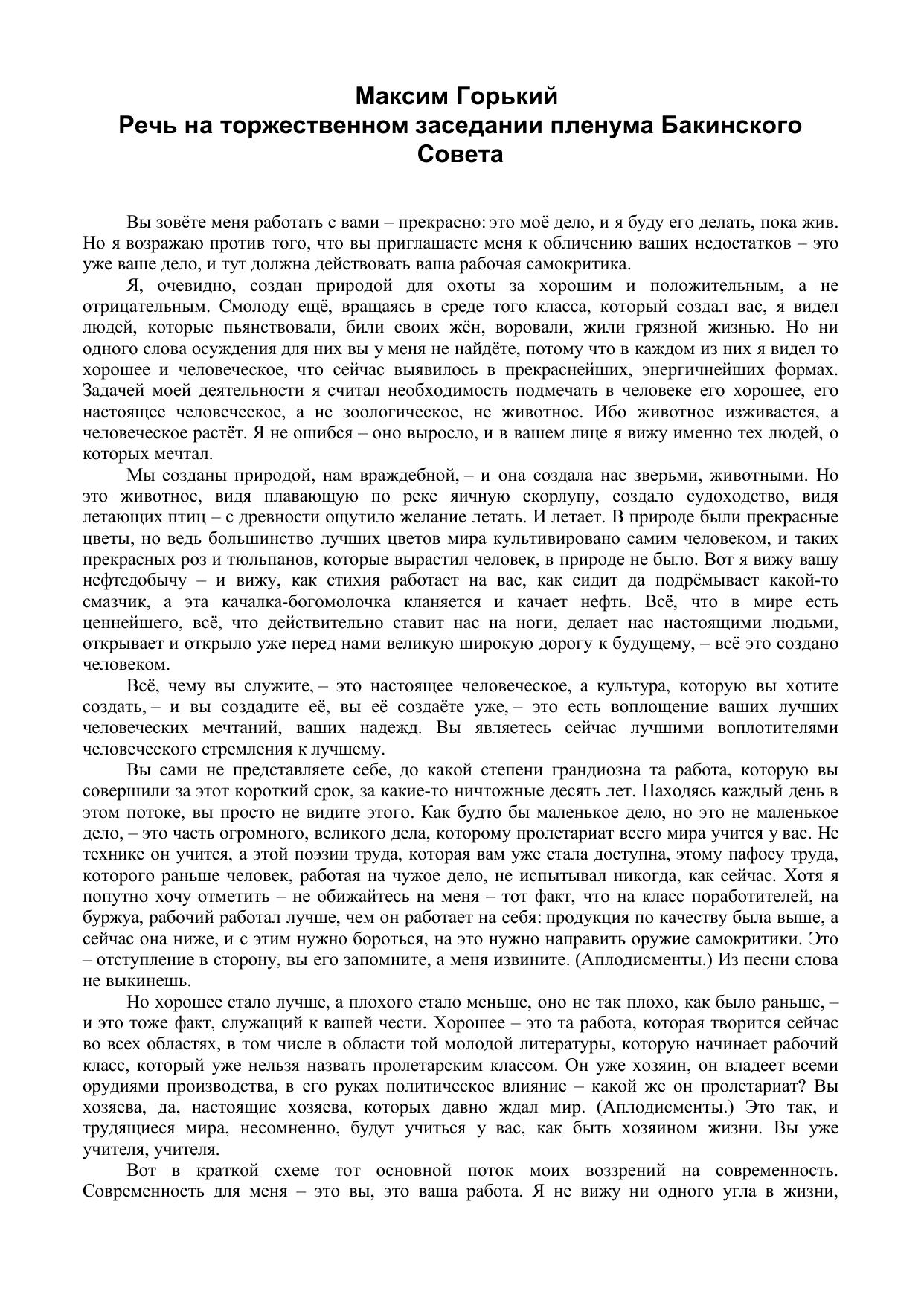 Речь на торжественном заседании пленума Бакинского Совета