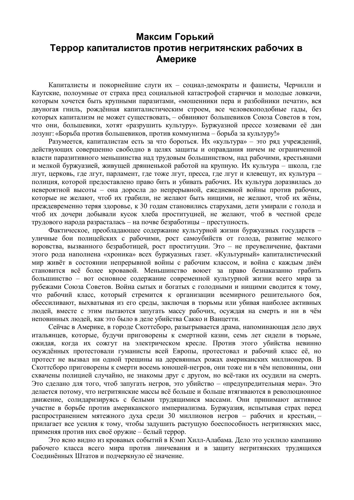 Террор капиталистов против негритянских рабочих в Америке