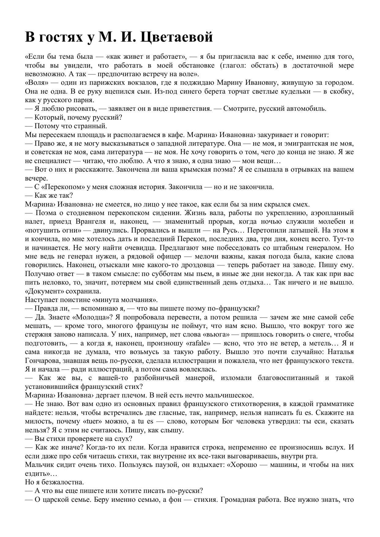 В гостях у М. И. Цветаевой