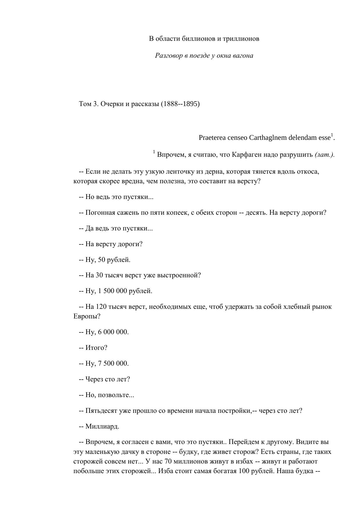 В области биллионов и триллионов Разговор в поезде у окна вагона