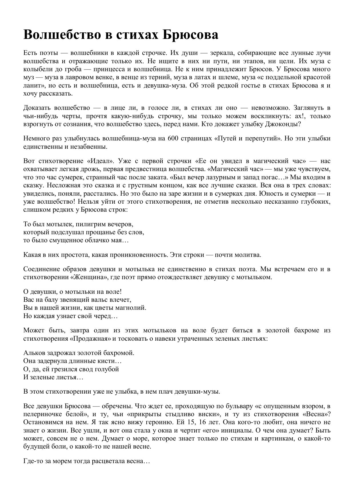 Волшебство в стихах Брюсова