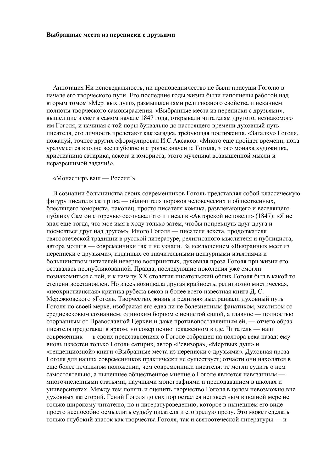 Выбранные места из переписки с друзьями