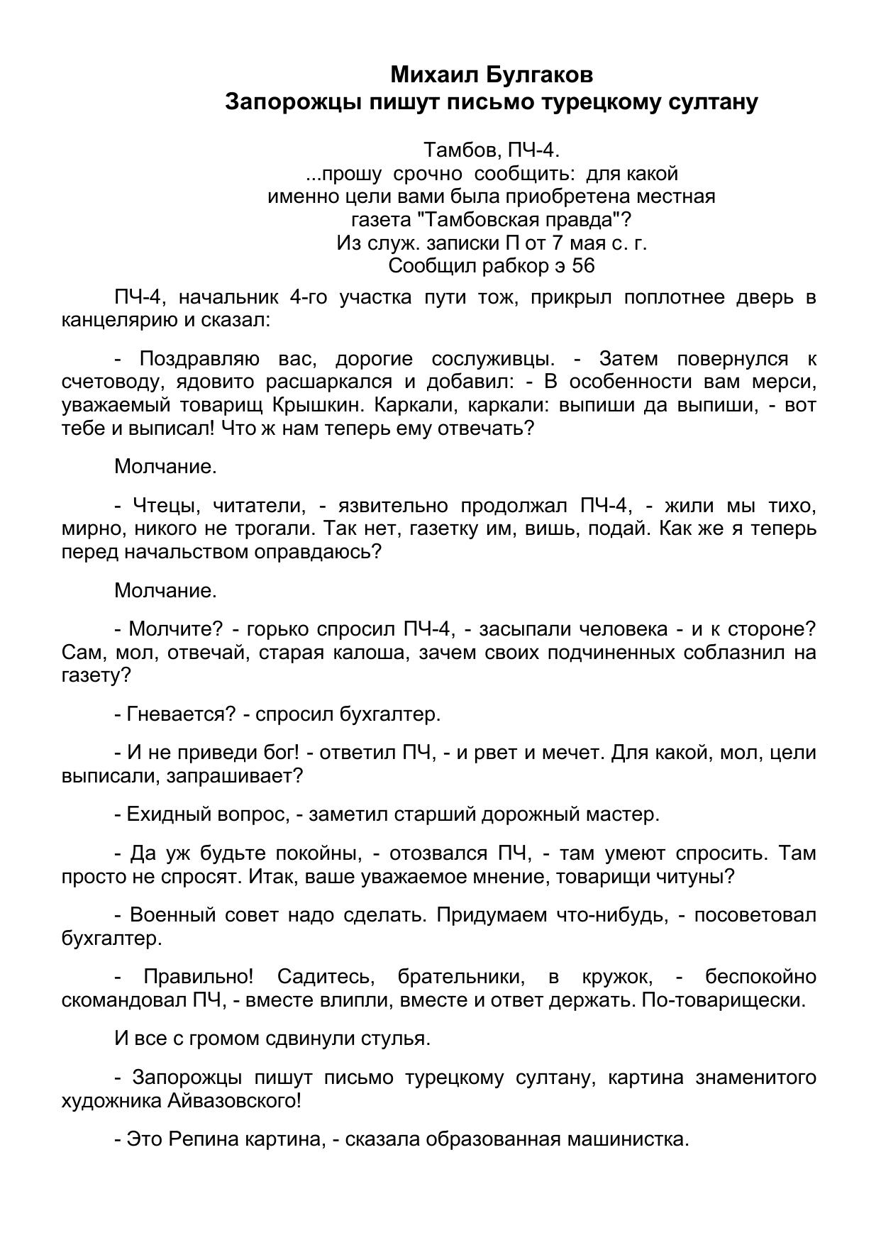 Запорожцы пишут письмо турецкому султану