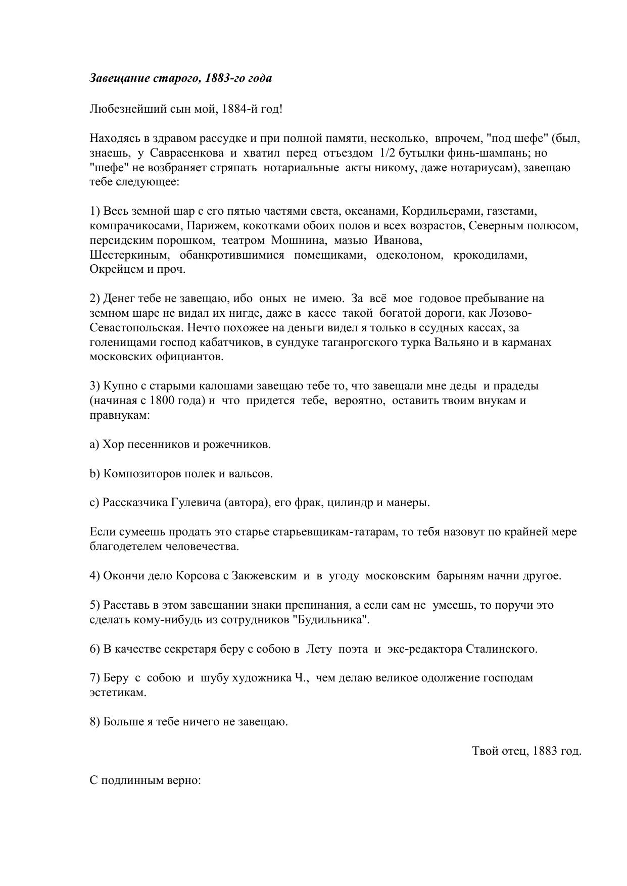 Завещание старого, -го года