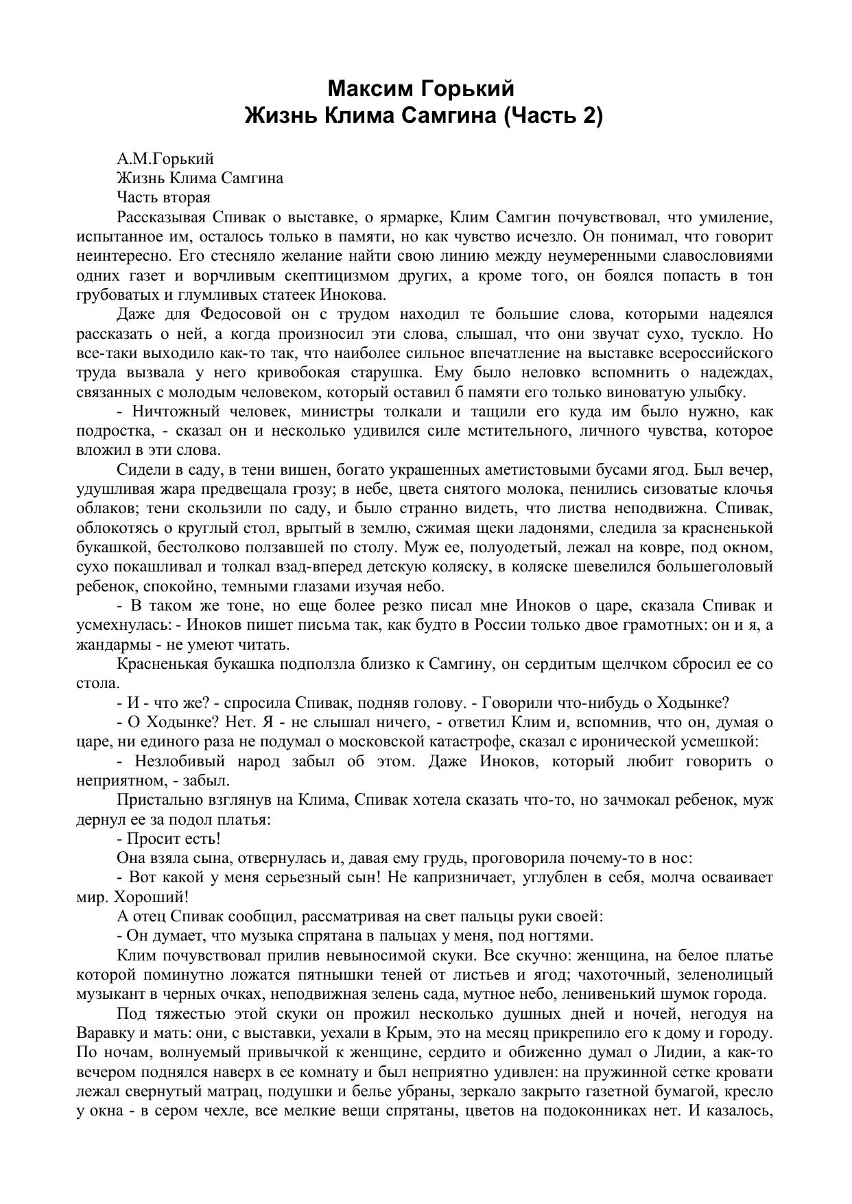 Жизнь Клима Самгина Часть 2