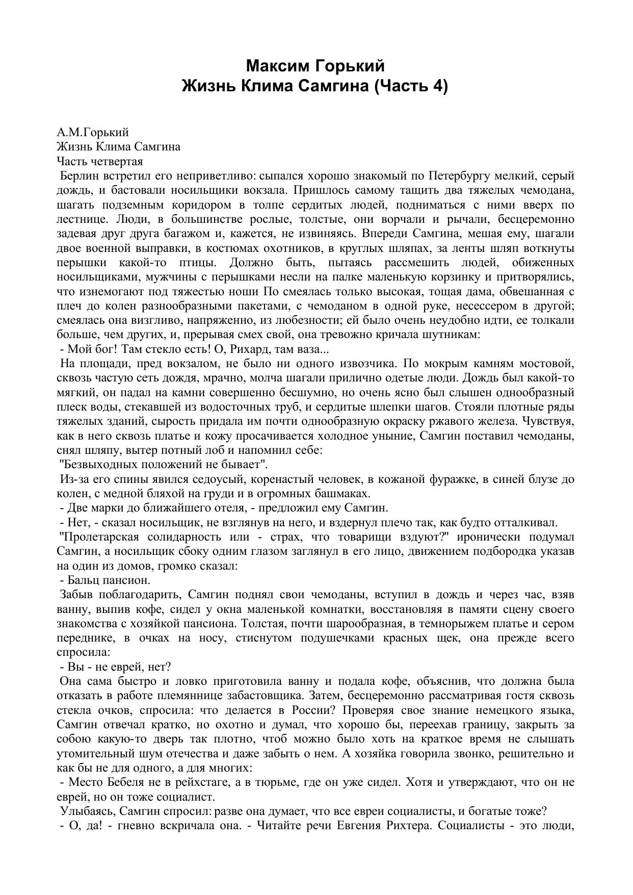 Жизнь Клима Самгина Часть 4