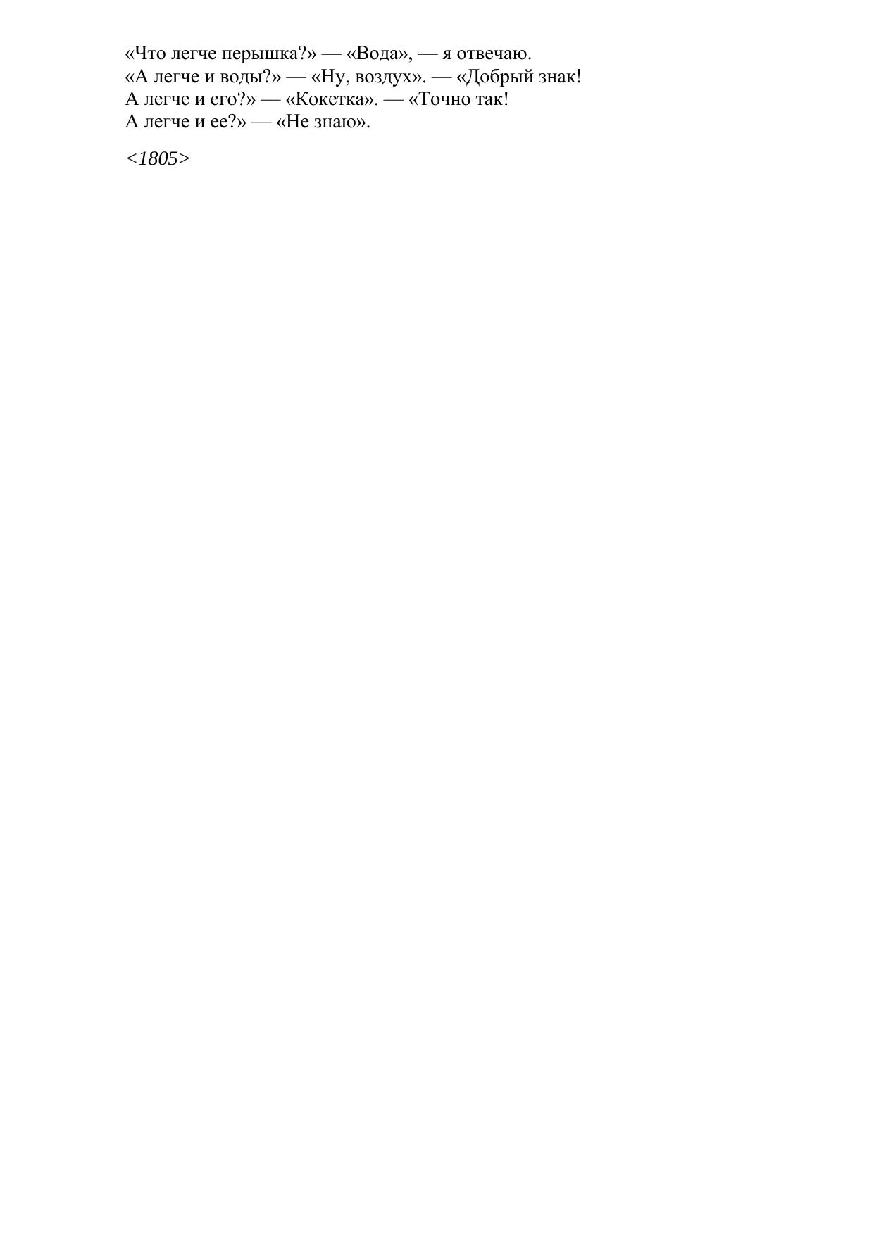 „Что легче перышка?” — „Вода”, — я отвечаю…