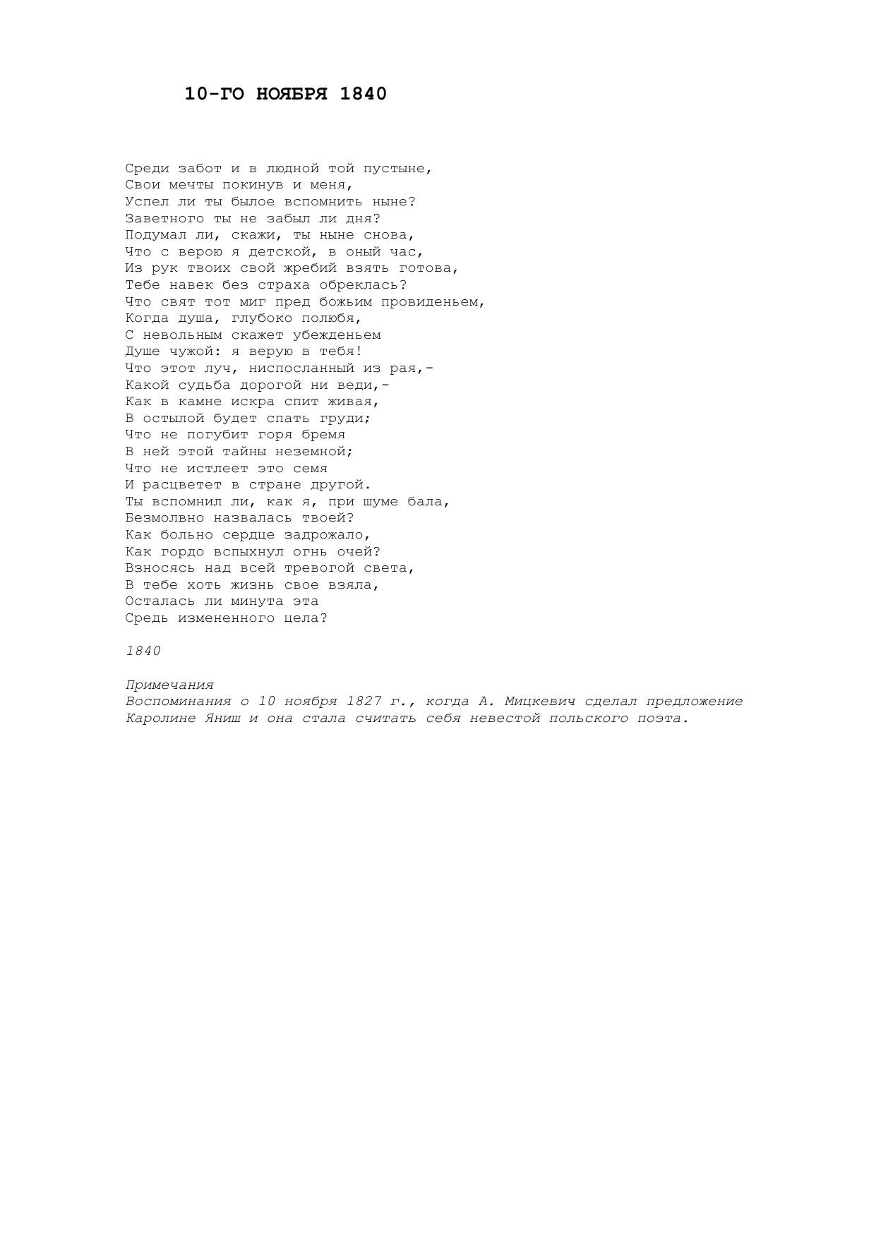 10 ноября 1840 (Среди забот и в людной той пустыне...)