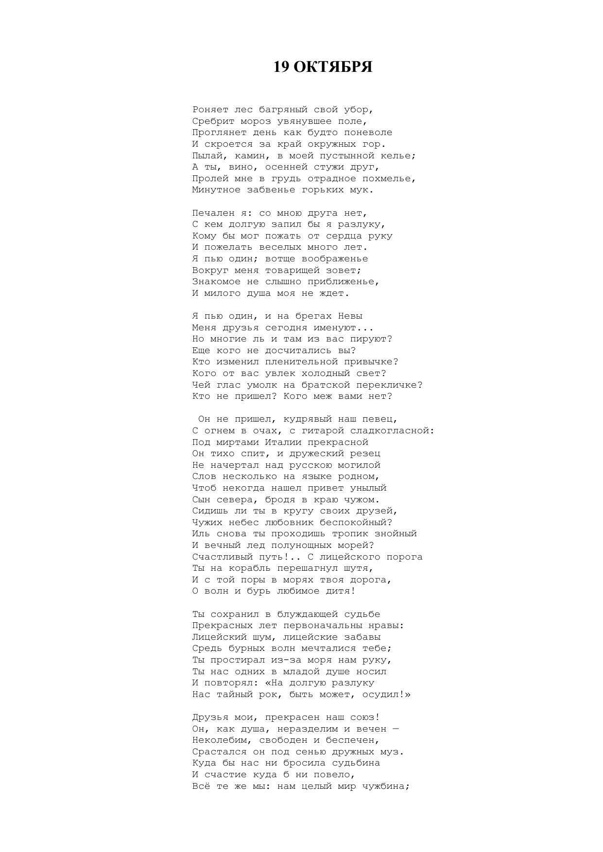 19 октября ("Роняет лес багряный свой убор...")