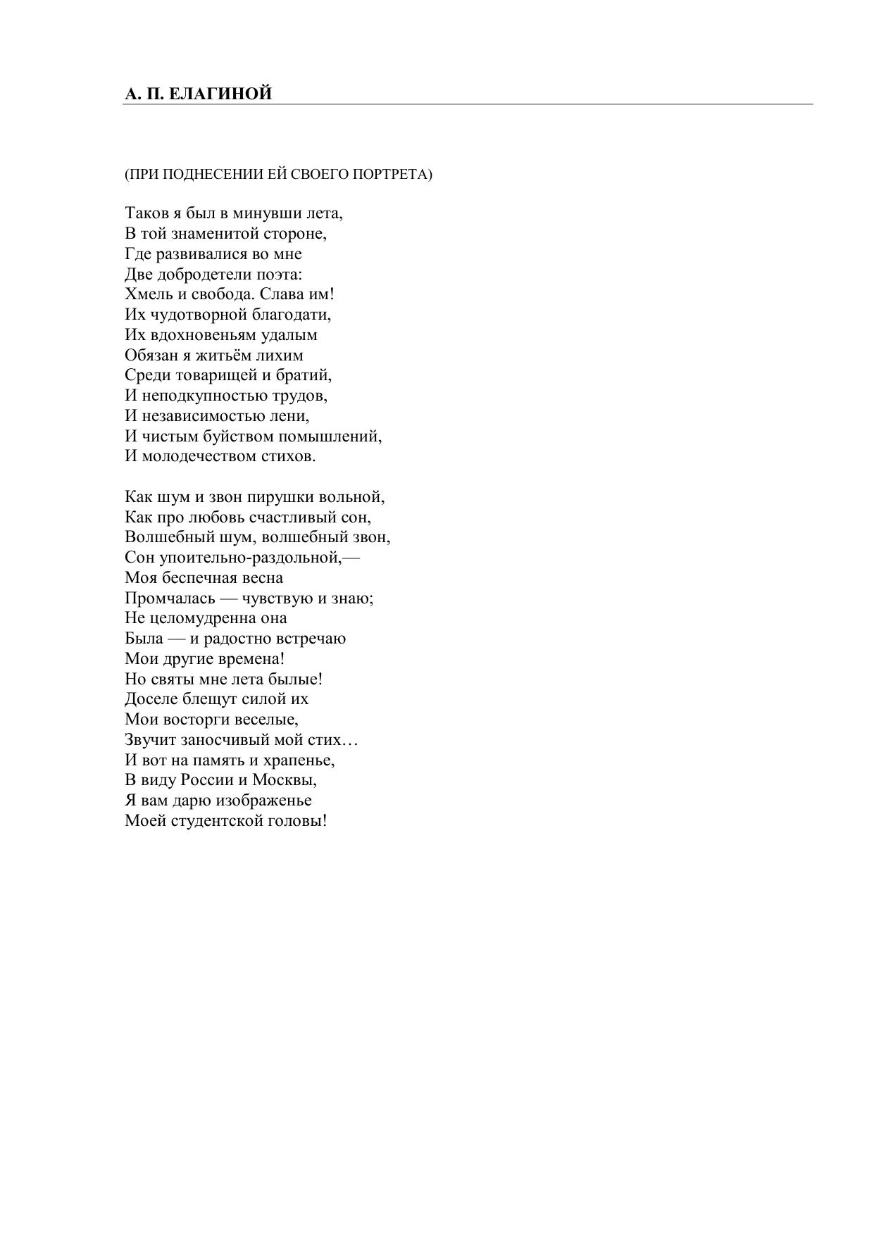 А. П. Елагиной (Таков я был в минувши лета…)