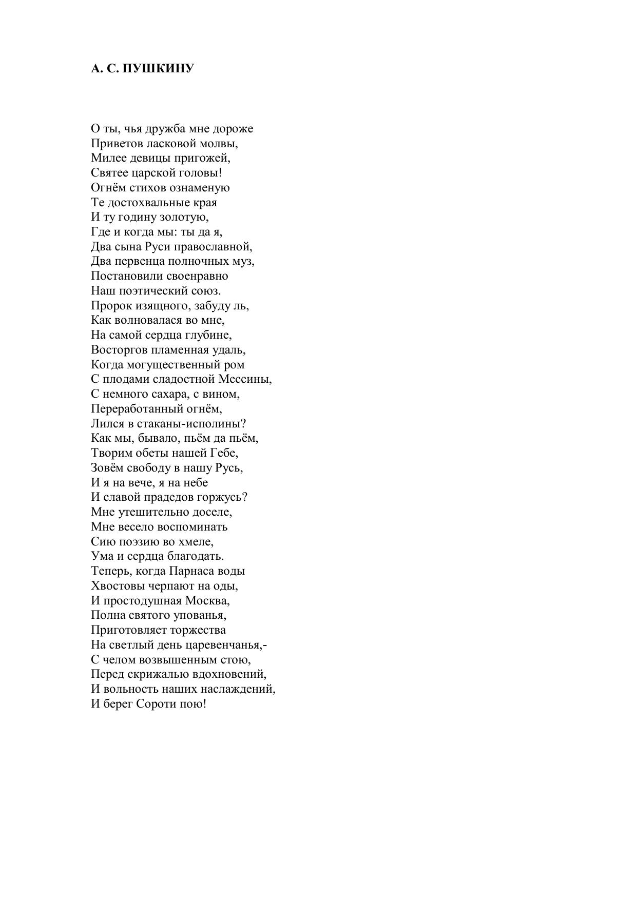 А. С. Пушкину (О ты, чья дружба мне дороже…)