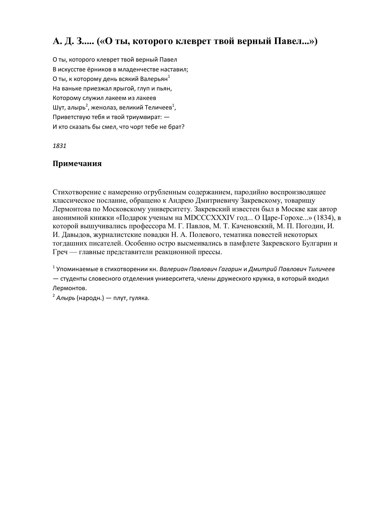 А. Д. З..... (О ты, которого клеврет твой верный Павел...)