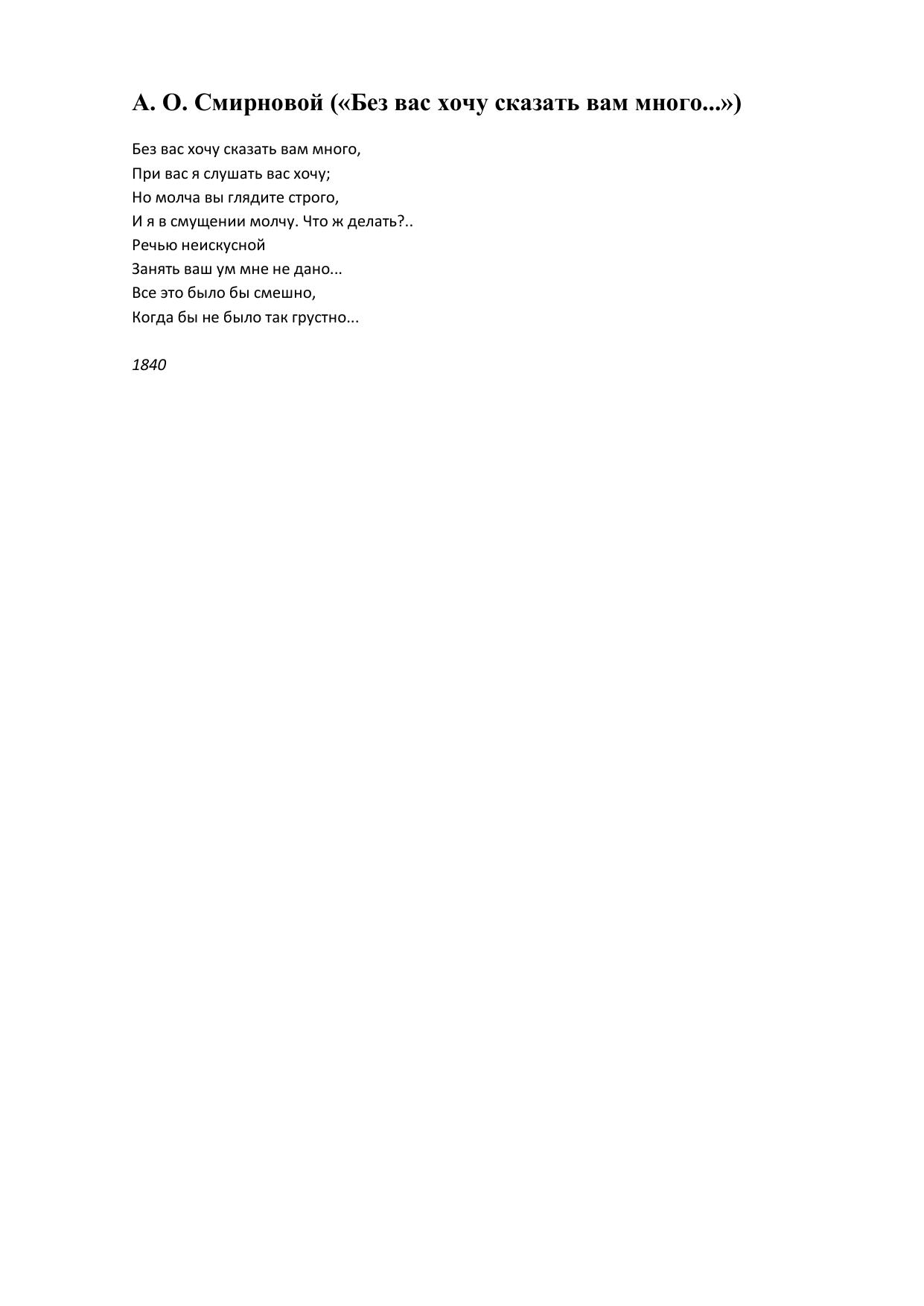 А. О. Смирновой (Без вас хочу сказать вам много...)
