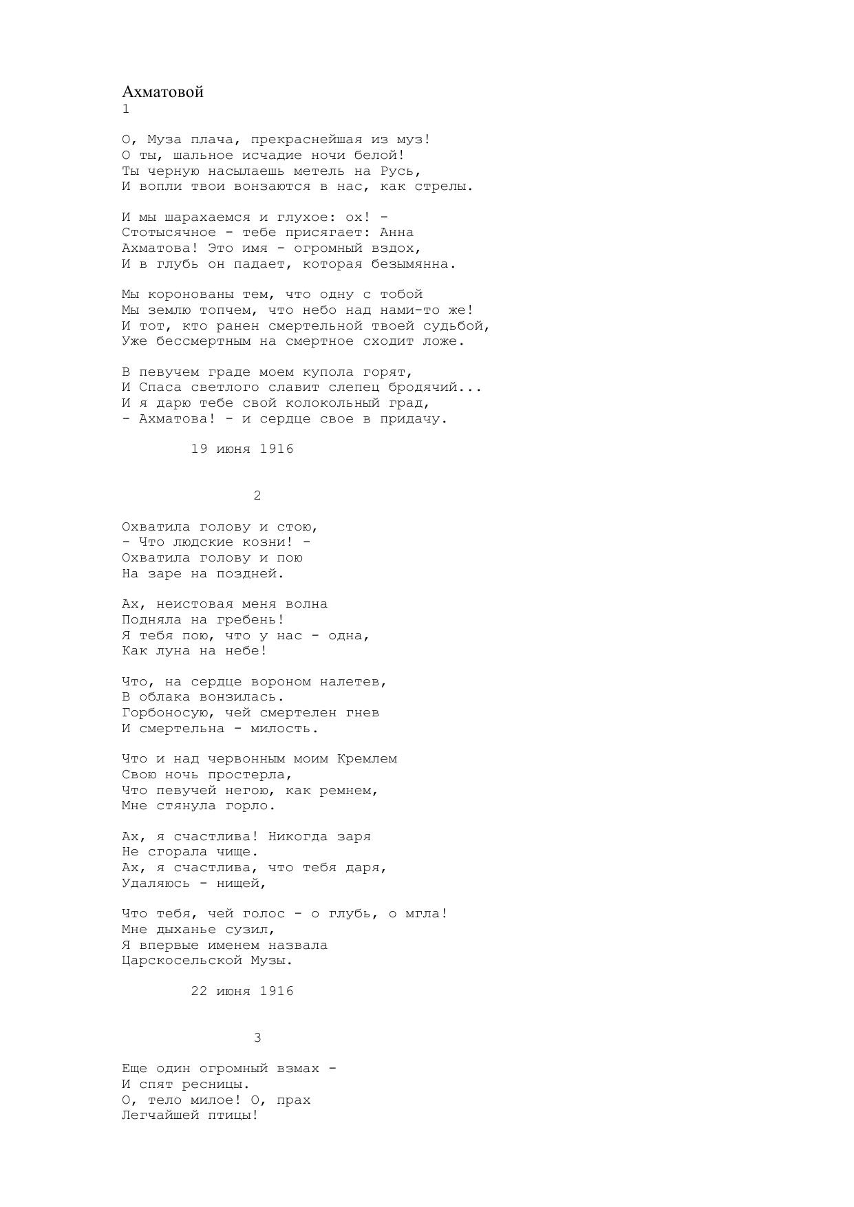 Ахматовой (о, муза плача, прекраснейшая из муз!)