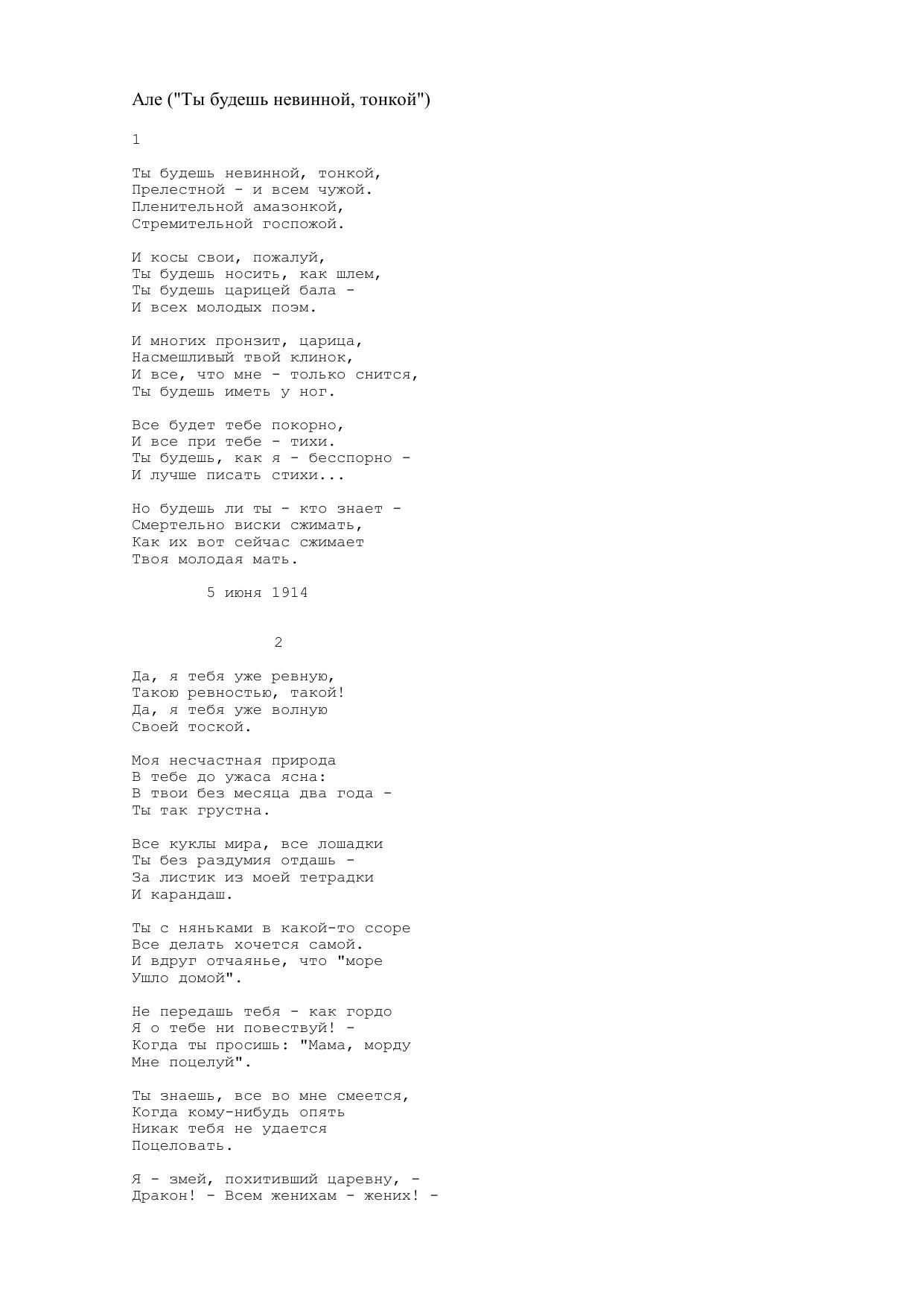 Але (ты будешь невинной, тонкой)
