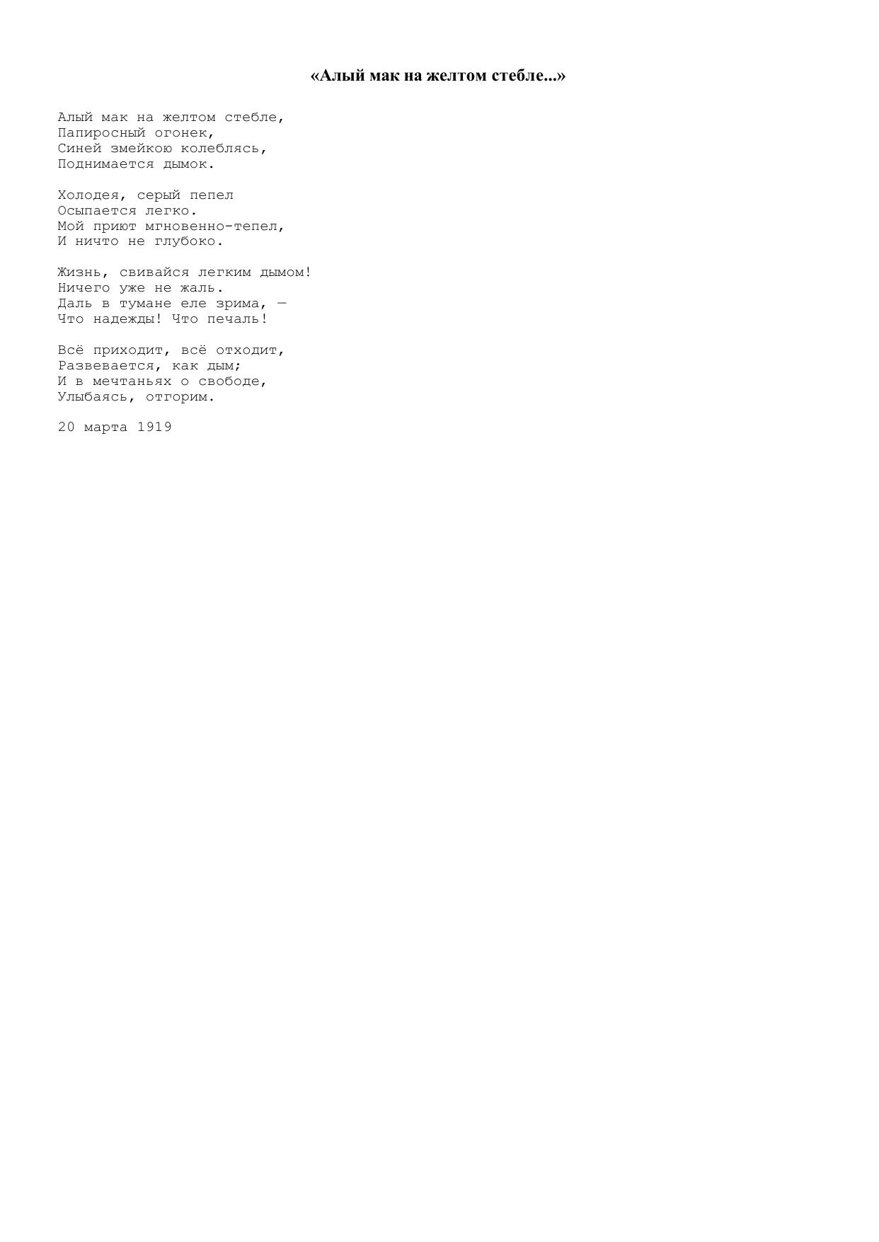 Алый мак на желтом стебле...