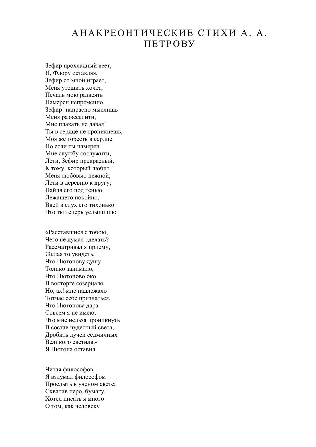 Анакреонтические стихи А. А. Петрову