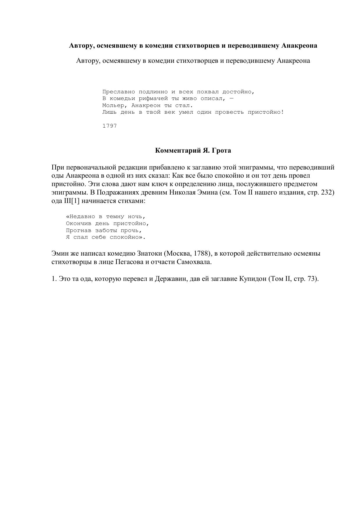 Автору, осмеявшему в комедии стихотворцев и переводившему Анакреона