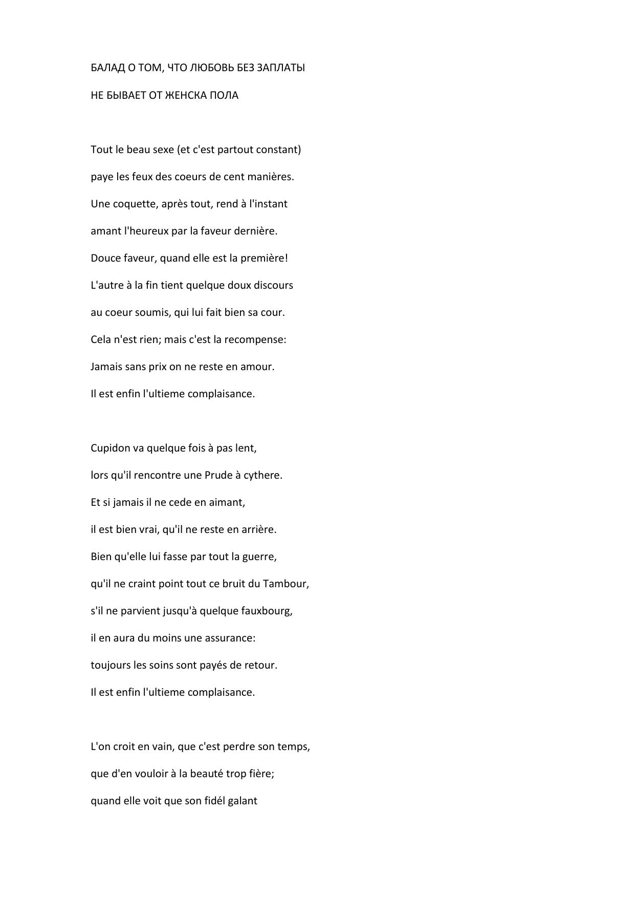 Балад о том, что любовь без заплаты не бывает от женска пола