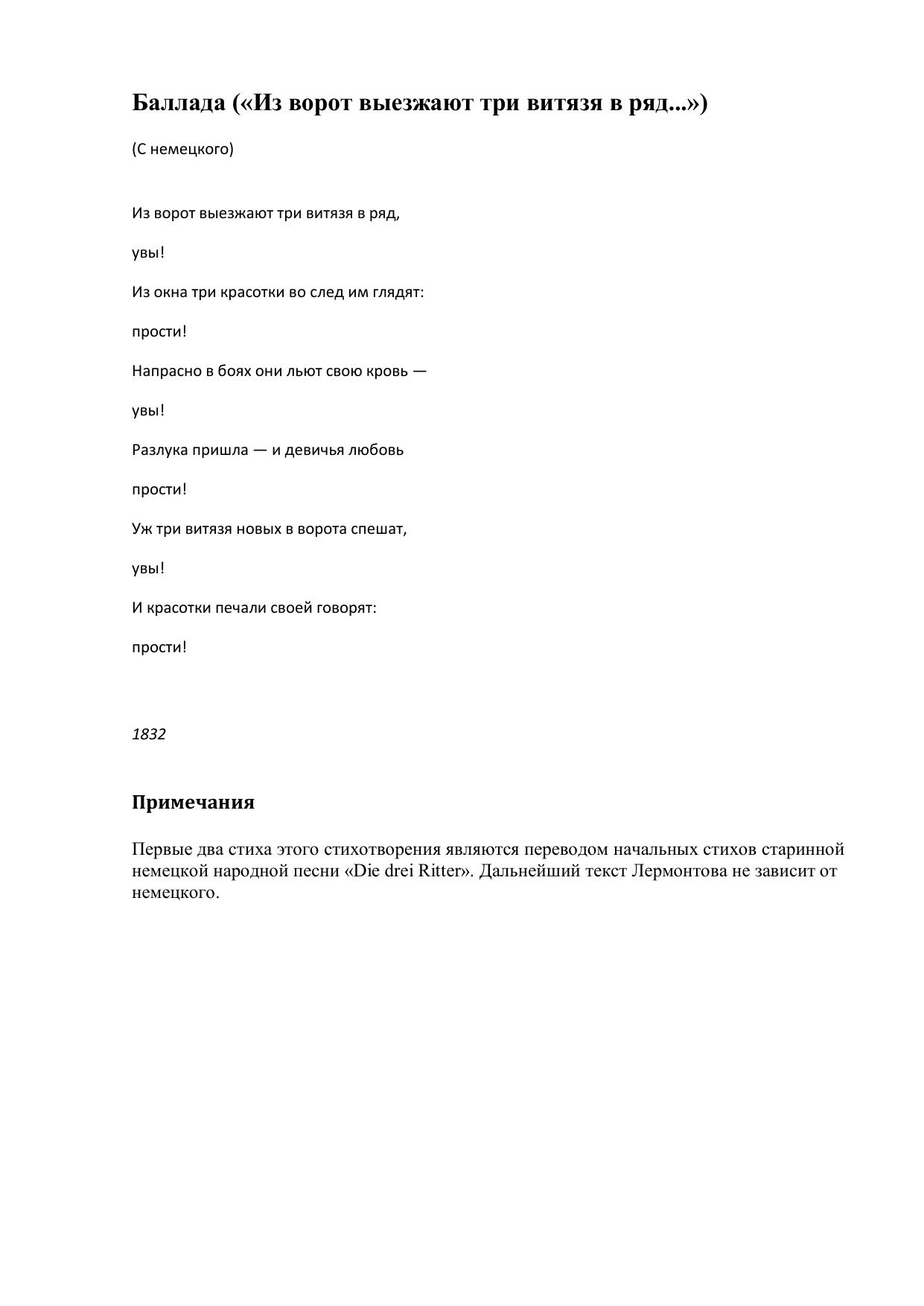 Баллада (Из ворот выезжают три витязя в ряд...)
