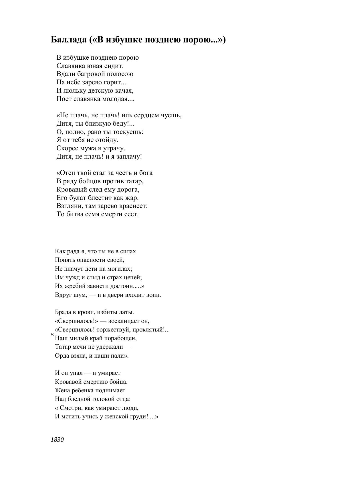 Баллада (В избушке позднею порою...)