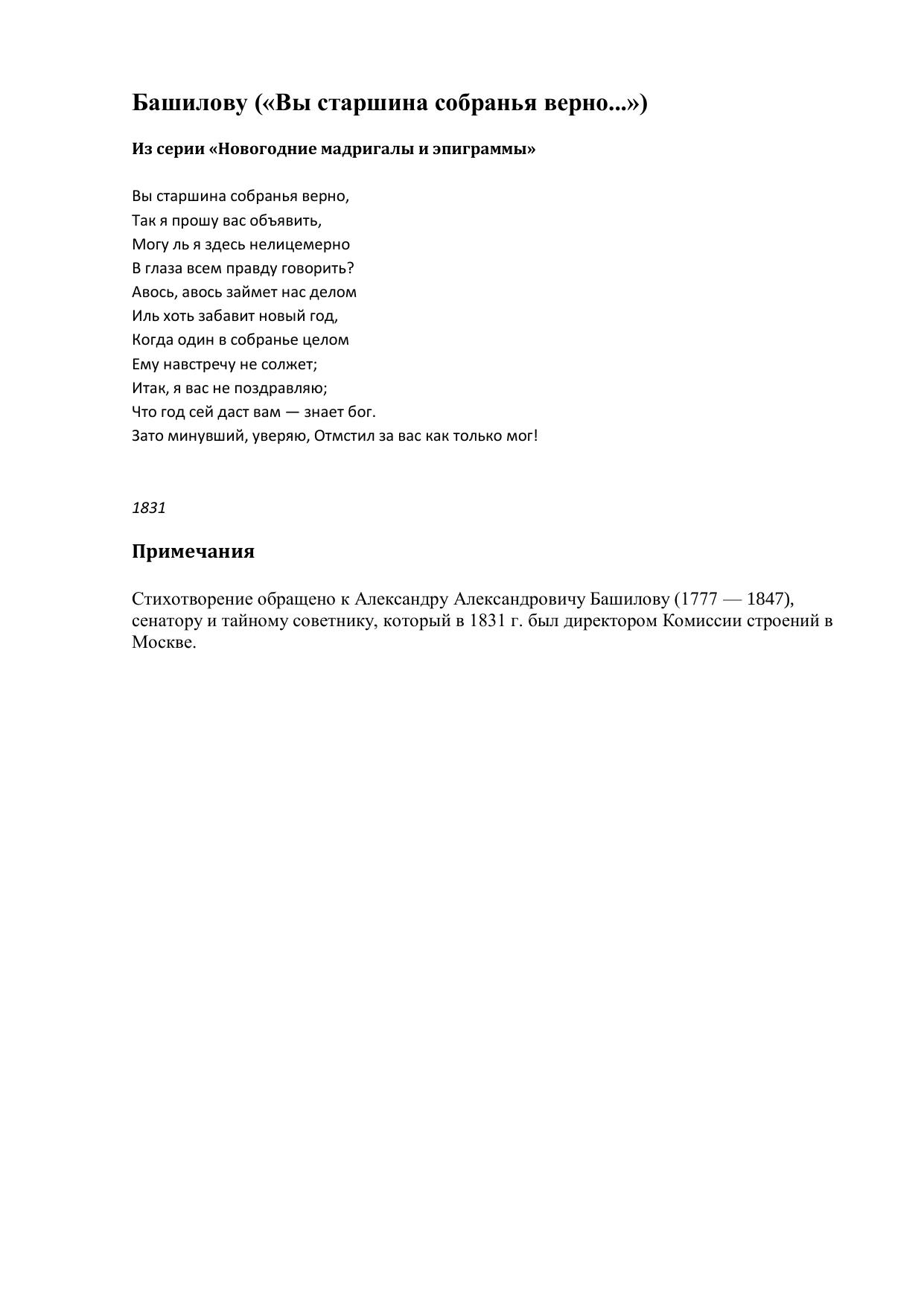 Башилову (Вы старшина собранья верно...)