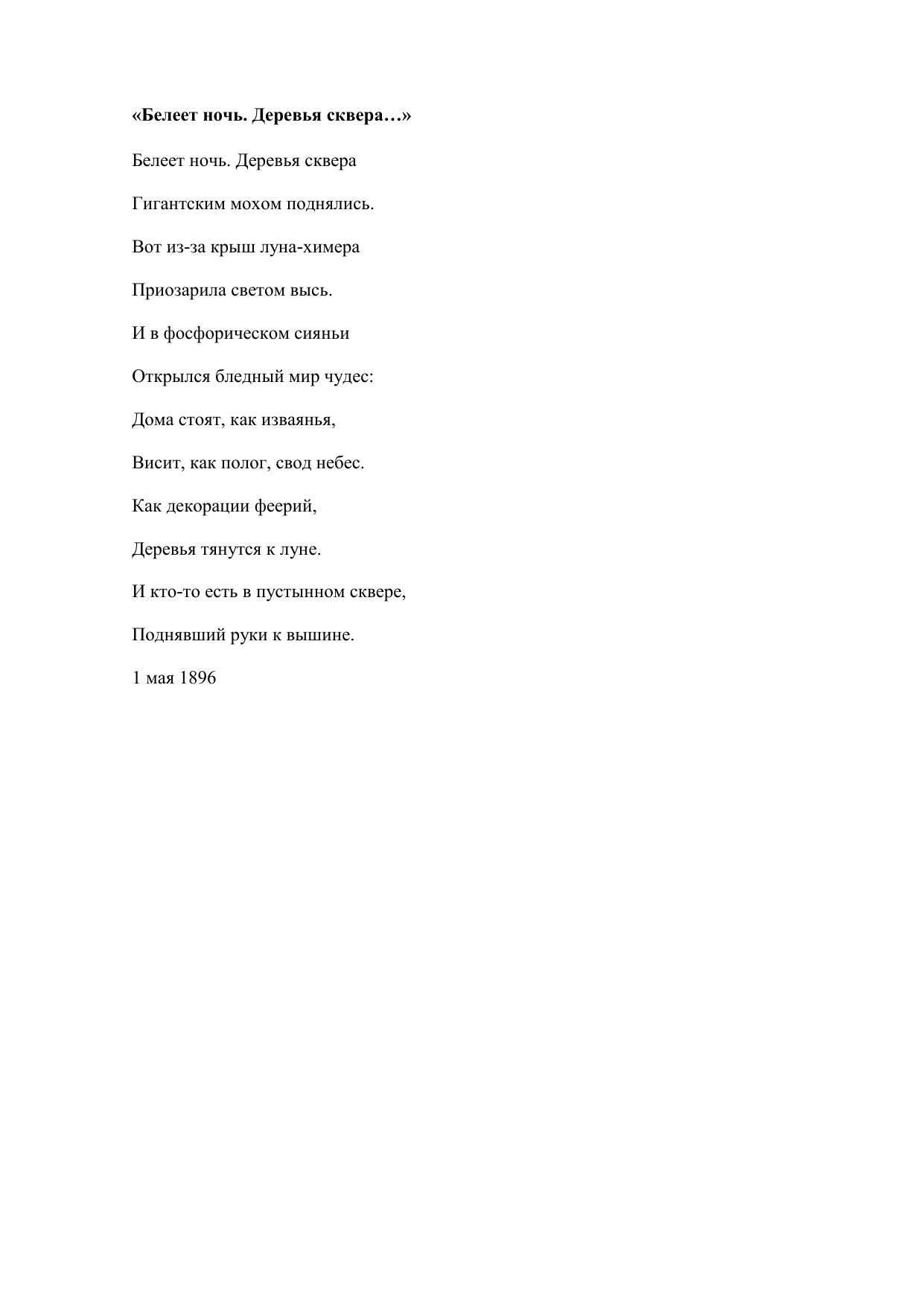 Белеет ночь. Деревья сквера…